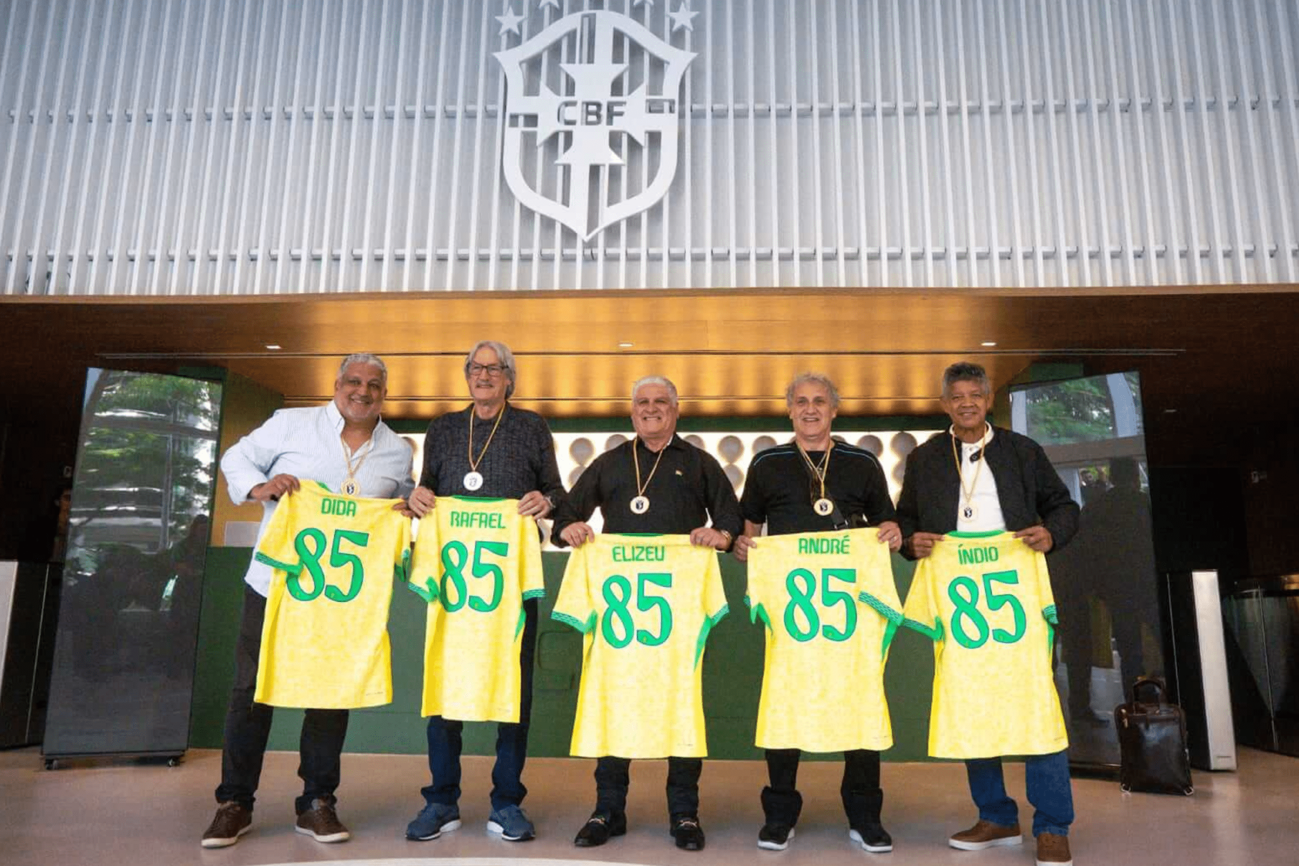Jogadores campeões brasileiros de 1985 pelo Coritiba receberam nesta terça-feira (12), na sede da CBF. no Rio de Janeiro, réplicas das medalhas oficiais da conquista de quarenta anos atrás. Esta entrega foi prometida pelo presidente da entidade, Samir Xaud, no dia 27 passado, durante a comemoração no Estádio Couto Pereira. Representando o grupo estiveram na CBF o goleiro Rafael, os laterais André e Dida, o meia Elizeu e o atacante Índio.