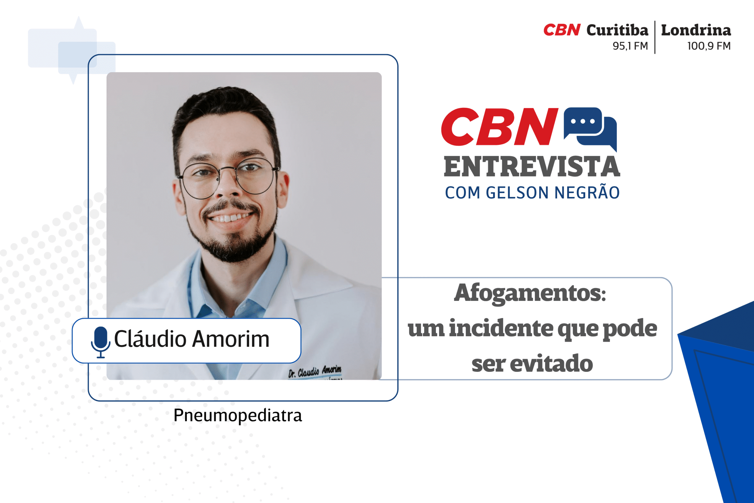 Para entender a mecânica dos afogamentos e como evitá-los, o CBN em Entrevista da última semana recebeu o pneumologista pediátrico Cláudio Amorim, professor adjunto do departamento de pediatria e cirurgia pediátrica da Universidade Estadual de Londrina.