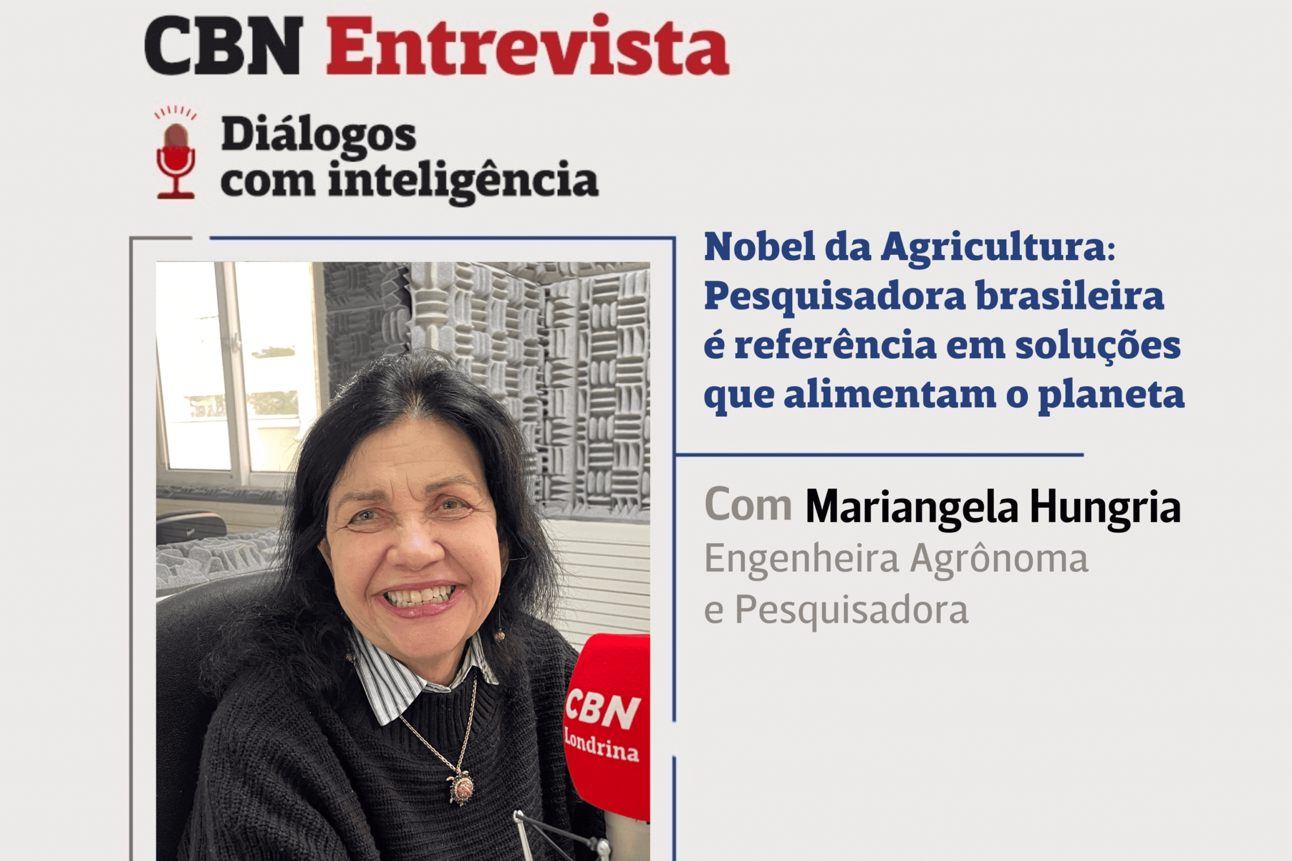 No CBN Entrevista do último sábado (21), o jornalista Gelson Negrão conversou com Mariangela Hungria, Engenheira Agrônoma e Pesquisadora, ganhandora do Prêmio Mundial de Alimentação, o “Nobel” da Agricultura. Durante o bate-papo, Mariangela contou sobre as motivações que a levaram à pesquisa, as dificuldades nesta trajetória, como o Brasil se sobressai no uso de bioinsumos e qual o futuro da produção agrícola brasileira.