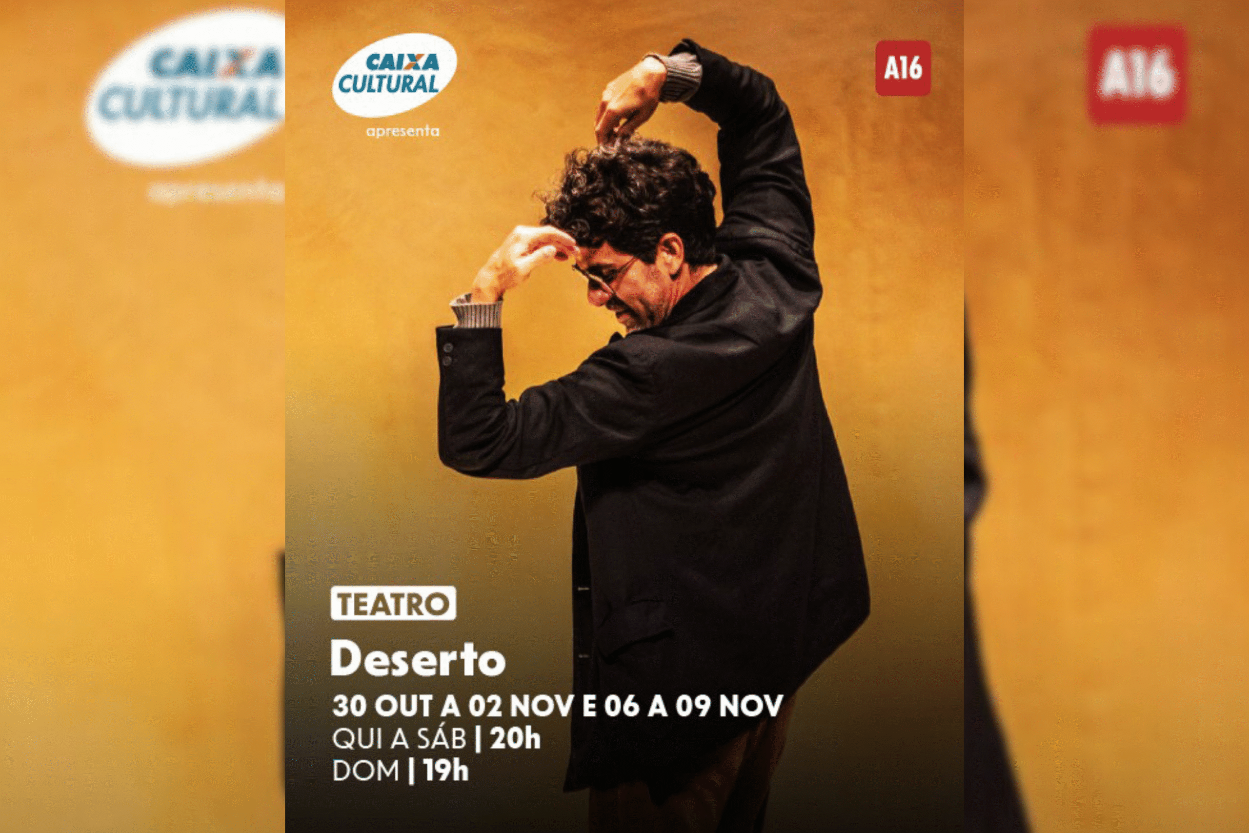 A Caixa Cultural Curitiba recebe, entre os dias 30 de outubro e 9 de novembro, o espetáculo “Deserto”, interpretado pelo ator Renato Livera e dirigido por Luiz Felipe Reis. A peça faz uma homenagem poética e política ao escritor chileno Roberto Bolaño, um dos nomes mais importantes da literatura latino-americana contemporânea. O monólogo, que já passou por capitais como Rio de Janeiro, São Paulo e Porto Alegre, propõe uma reflexão sobre o papel da arte, da poesia e da resistência em tempos de desigualdade e opressão.