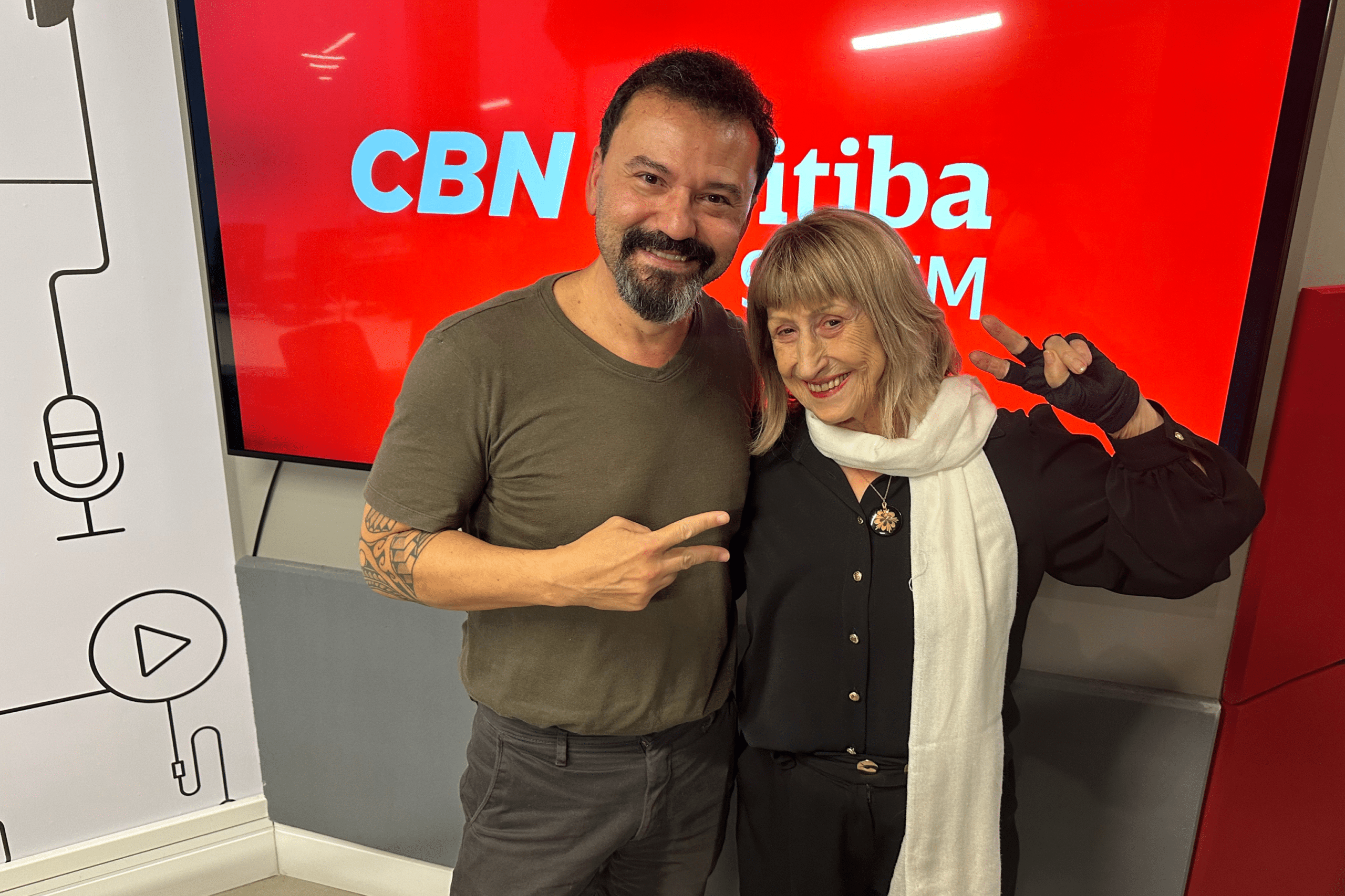 Grasiani Jacomini e Ayrton Baptista Junior conversaram com Regina Vogue, que é um dos grandes nomes do teatro paranaense e que comemora 64 anos dedicados aos palcos, além do ator Cicero Lira, um dos companheiros de cena de Regina Vogue neste espetáculo.